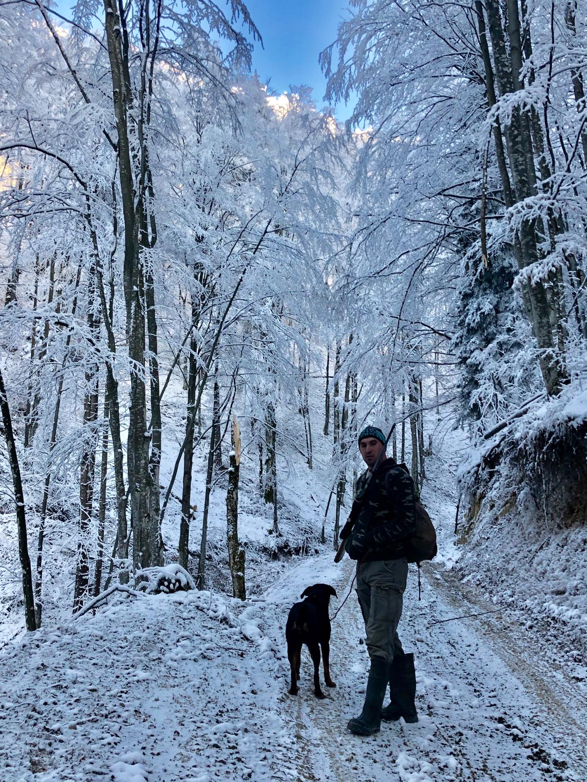 - Damian Petre – paznic de vânătoare pe fondul 7 Poiana